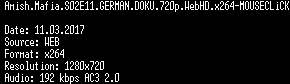 | FiLENAME: | Amish.Mafia.S02E11.GERMAN.DOKU.720p.WebHD.x264-MOUSECLiCK.mkv |