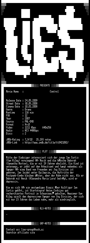 | FiLENAME: | Control (2007) [GER-AC3 WS DVD] CD1.avi |
