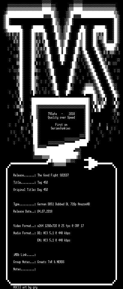 | FiLENAME: | The.Good.Fight.S02E07.Tag.450.GERMAN.DL.720p.WebHD.x264-TVS.mkv |