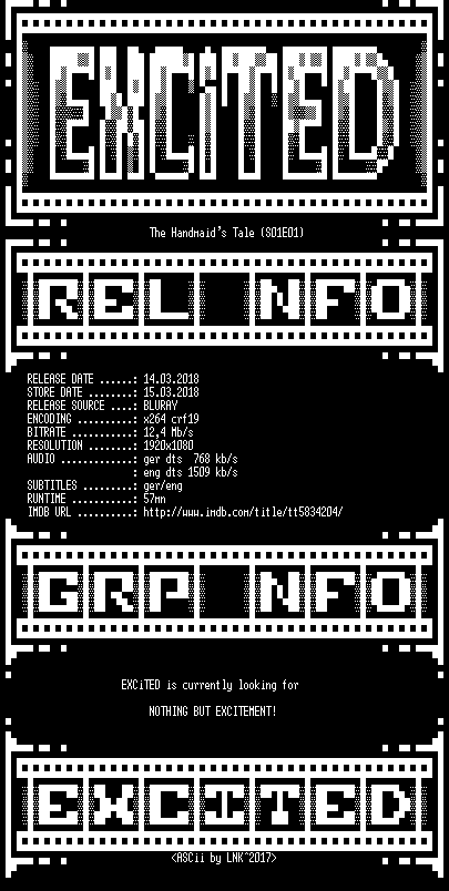 | FiLENAME: | The.Handmaids.Tale.S01E01.German.DL.1080p.BluRay.x264-EXCiTED.mkv |
