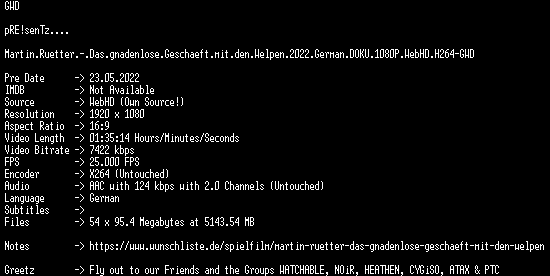 | FiLENAME: | Martin.Ruetter.-.Das.gnadenlose.Geschaeft.mit.den.Welpen.2022.German.DOKU.1080P.WebHD.H264-GWD.mkv |