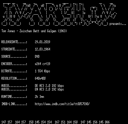 | FiLENAME: | Tom.Jones.Zwischen.Bett.und.Galgen.1963.German.DL.DVDRip.x264-TVARCHiV.mkv |