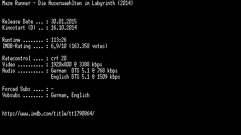 | FiLENAME: | Maze.Runner.Die.Auserwaehlten.im.Labyrinth.German.DL.1080p.BluRay.x264-EXQUiSiTE.mkv |