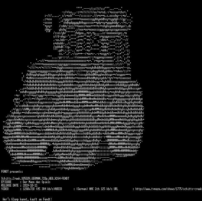 | FiLENAME: | Schitts.Creek.S05E09.GERMAN.720p.WEB.X264-FENDT.mkv |