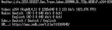 | FiLENAME: | Another.Life.2019.S01E07.Den.Traum.leben.GERMAN.DL.720p.WEBRiP.x264-OCA.mkv |