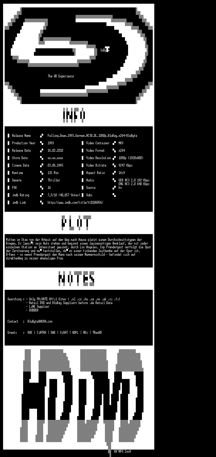 | FiLENAME: | Falling Down (1993) [DL 1080p BD].mkv |