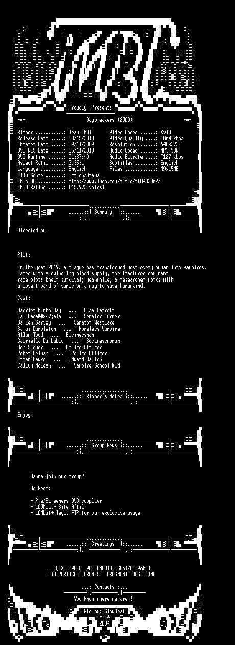 | FiLENAME: | Daybreakers.2009.BDRip.XviD-iMBT.avi |