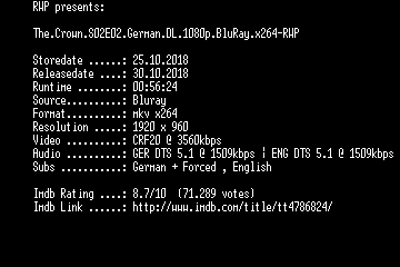 | FiLENAME: | The.Crown.S02E02.German.DL.1080p.BluRay.x264-RWP.mkv |