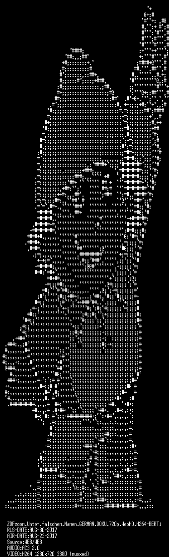 | FiLENAME: | ZDFzoom.Unter.falschem.Namen.GERMAN.DOKU.720p.WebHD.H264-BERTi.mkv |