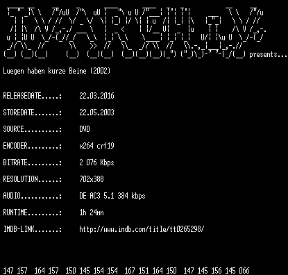 | FiLENAME: | Luegen.haben.kurze.Beine.2002.German.DVDRip.x264.iINTERNAL-TVARCHiV.mkv |