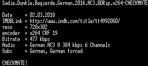 | FiLENAME: | Sadie.Dunkle.Begierde.German.2016.AC3.BDRip.x264-CHECKMATE.mkv |