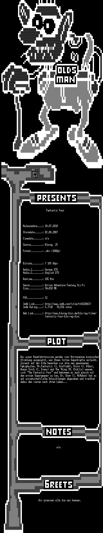 | FiLENAME: | Fantastic.Four.2005.German.DL.DTS.1080p.BluRay.x264-OldsMan.mkv |