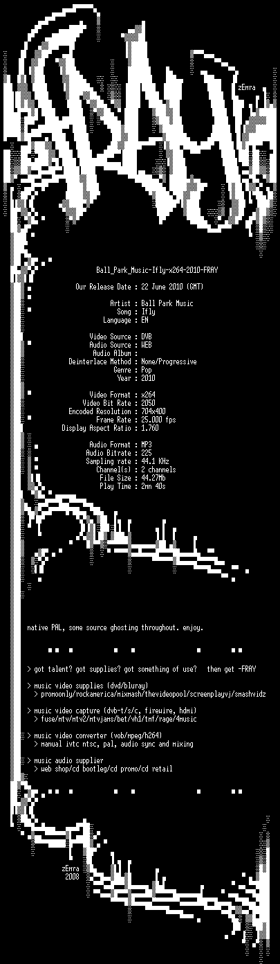 | FiLENAME: | Ball_Park_Music-iFly-x264-2010-FRAY.mkv |