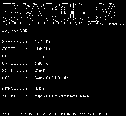| FiLENAME: | Crazy.Heart.2009.German.BDRip.x264.iNTERNAL-TVARCHiV.mkv |