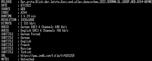 | FiLENAME: | Der.erste.Blick.der.letzte.Kuss.und.alles.dazwischen.2022.GERMAN.DL.1080P.WEB.X264-WAYNE.mkv |