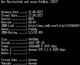| FiLENAME: | Der.Meisterdieb.und.seine.Schaetze.2017.German.1080p.BluRay.x264-SPiCY.mkv |