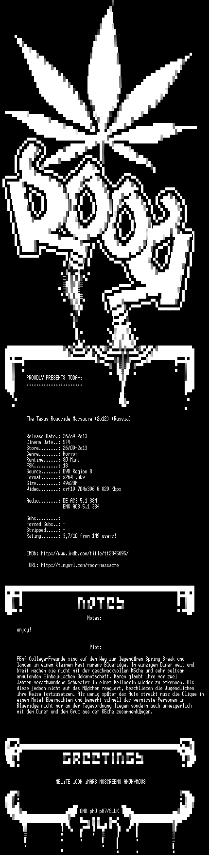 | FiLENAME: | The.Texas.Roadside.Massacre.German.2012.DL.DVDRiP.x264-ROOR.mkv |