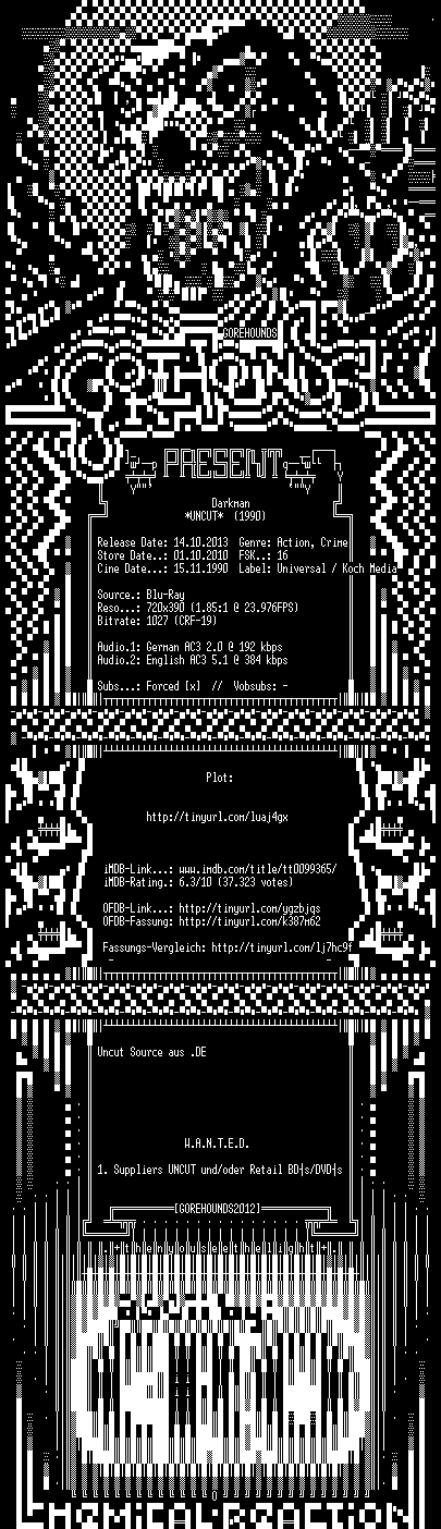| FiLENAME: | Darkman.UNCUT.REMASTERED.GERMAN.1990.DL.BDRiP.x264-GOREHOUNDS.mkv |