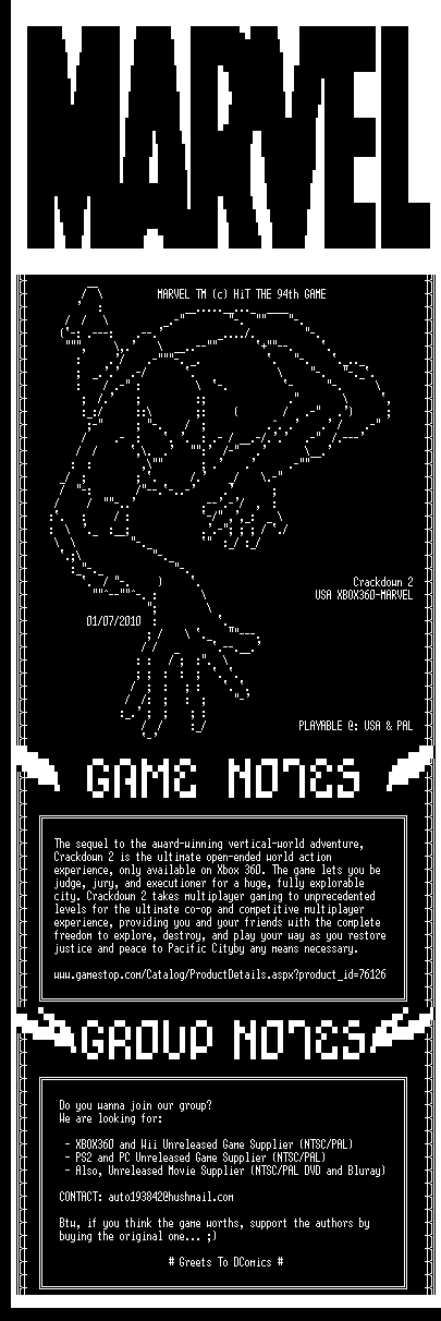 | FiLENAME: | Crackdown.2.XBOX360-MARVEL.iso |