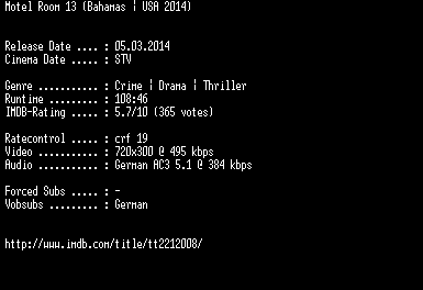 | FiLENAME: | Motel.Room.13.German.2014.BDRiP.x264-EXQUiSiTE.mkv |