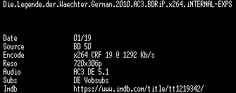 | FiLENAME: | Die.Legende.der.Waechter.German.2010.AC3.BDRiP.x264.iNTERNAL-EXPS.mkv |