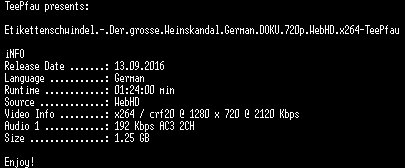 | FiLENAME: | Etikettenschwindel.-.Der.grosse.Weinskandal.German.DOKU.720p.WebHD.x264-TeePfau.mkv |