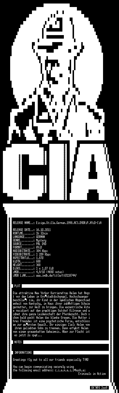 | FiLENAME: | Eisige.Stille.German.1998.AC3.DVDRiP.XViD-CiA.avi |