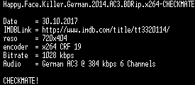 | FiLENAME: | Happy.Face.Killer.German.2014.AC3.BDRip.x264-CHECKMATE.mkv |