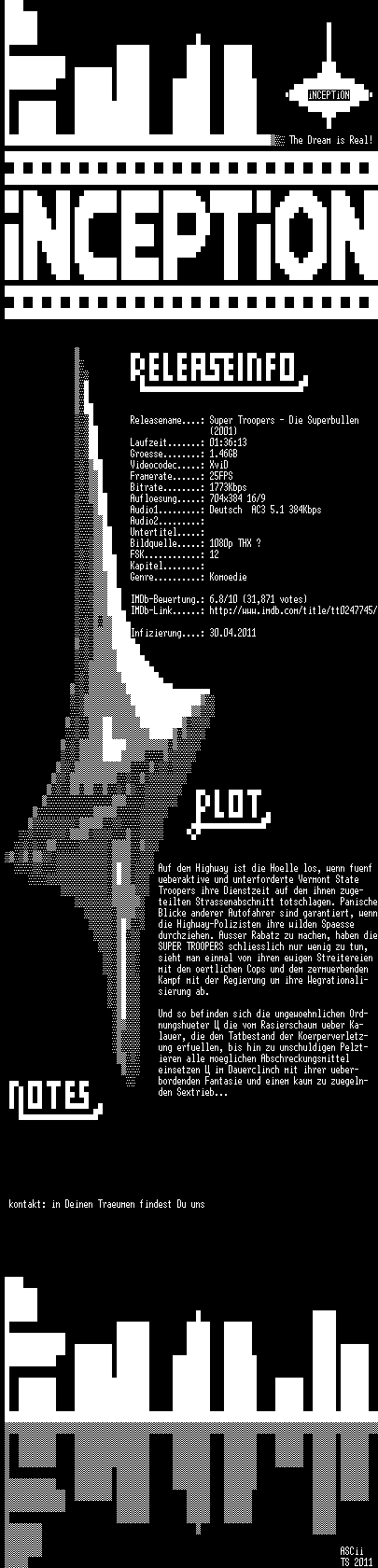 | FiLENAME: | Super.Troopers.Die.Superbullen.2001.German.AC3RD.HDRip.XviD-iNCEPTiON.avi |