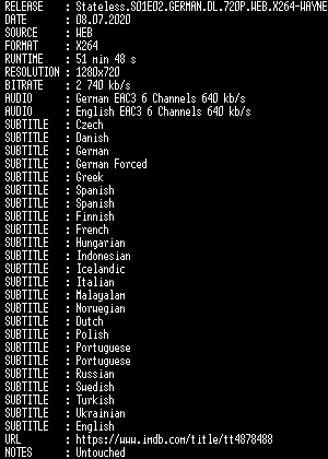 | FiLENAME: | Stateless.S01E02.GERMAN.DL.720P.WEB.X264-WAYNE.mkv |