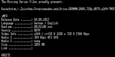 | FiLENAME: | Kasachstan.-.Zwischen.Groessenwahn.und.Krise.GERMAN.DOKU.720p.HDTV.x264-TMSF.mkv |