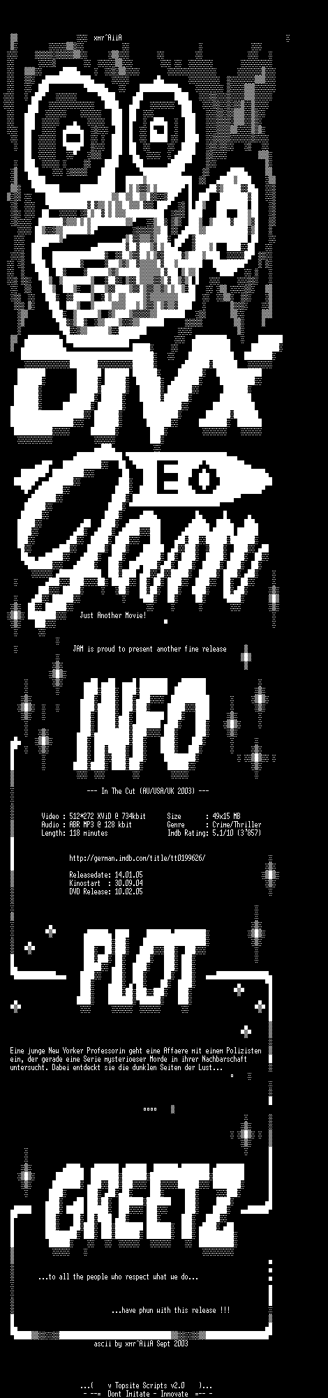 | FiLENAME: | In The Cut (2004) [GER WS DVD].avi |