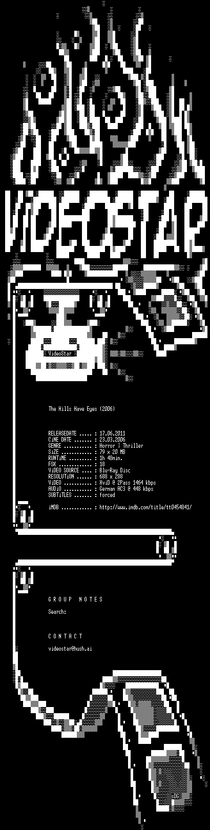 | FiLENAME: | The.Hills.Have.Eyes.German.2006.AC3.BDRip.XviD.iNTERNAL-VideoStar.avi |