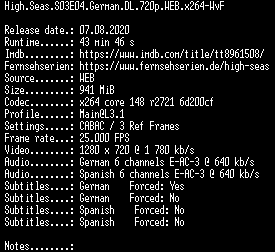 | FiLENAME: | High.Seas.S03E04.German.DL.720p.WEB.x264-WvF.mkv |