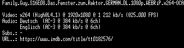 | FiLENAME: | Family.Guy.S16E08.Das.Fenster.zum.Rektor.GERMAN.DL.1080p.WEBRiP.x264-OCA.mkv |