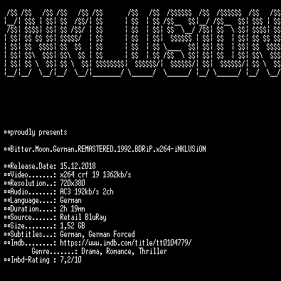 | FiLENAME: | Bitter.Moon.German.REMASTERED.1992.BDRiP.x264-iNKLUSiON.mkv |