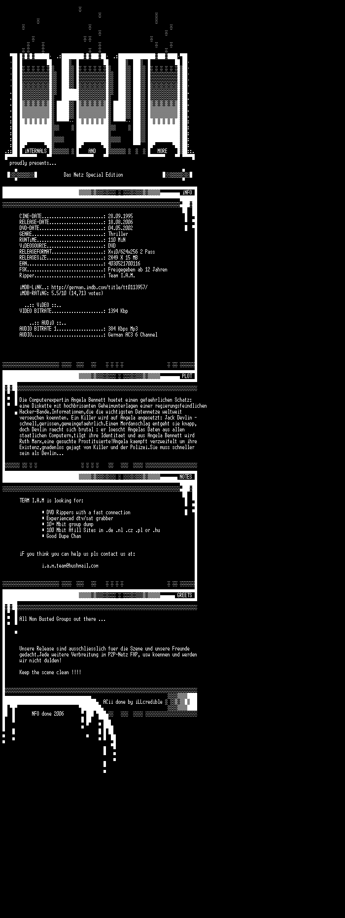 | FiLENAME: | Das Netz (SE) (1995) [GER-AC3 WS DVD] CD1.avi |