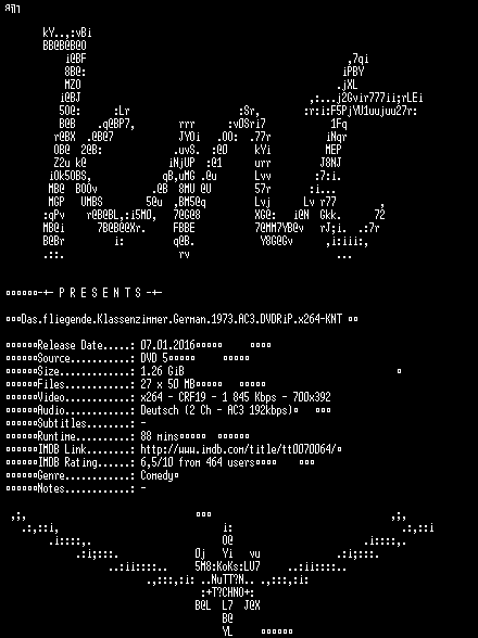 | FiLENAME: | Das.fliegende.Klassenzimmer.German.1973.AC3.DVDRiP.x264-KNT.mkv |