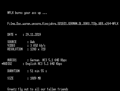 | FiLENAME: | Filme.Das.waren.unsere.Kinojahre.S01E01.GERMAN.DL.DOKU.720p.WEB.x264-NFLX.mkv |