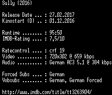 | FiLENAME: | Sully.German.2016.AC3.BDRip.x264-COiNCiDENCE.mkv |
