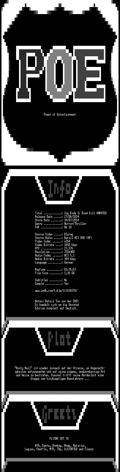 | FiLENAME: | Joy.Ride.3.UNRATED.2014.BDRip.RETAiL.AC3.Dubbed.German.x264-POE.mkv |