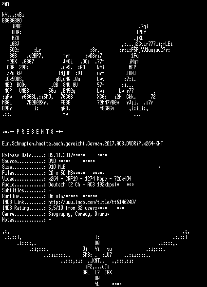 | FiLENAME: | Ein.Schnupfen.haette.auch.gereicht.German.2017.AC3.DVDRiP.x264-KNT.mkv |