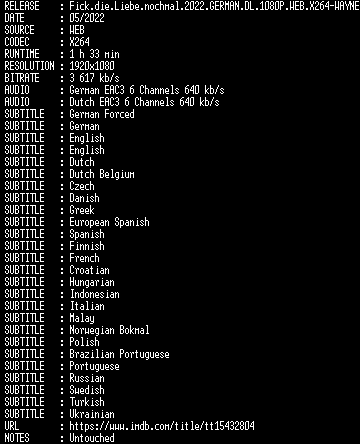| FiLENAME: | Fick.die.Liebe.nochmal.2022.GERMAN.DL.1080P.WEB.X264-WAYNE.mkv |