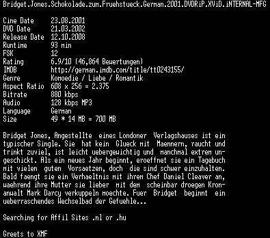 | FiLENAME: | Bridget.Jones.Schokolade.zum.Fruehstueck.German.2001.DVDRiP.XViD.iNTERNAL-MFG.avi |