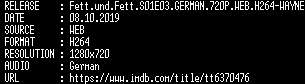 | FiLENAME: | Fett.und.Fett.S01E03.GERMAN.720P.WEB.H264-WAYNE.mkv |