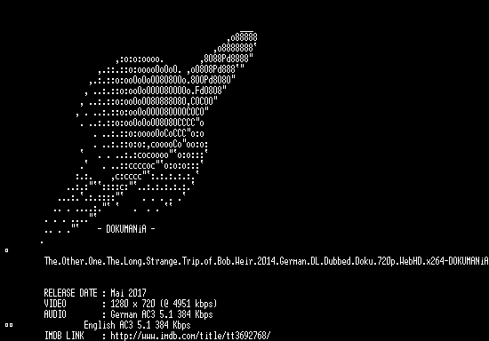 | FiLENAME: | The.Other.One.The.Long.Strange.Trip.of.Bob.Weir.2014.German.DL.Dubbed.Doku.720p.WebHD.x264-DOKUMANiA.mkv |