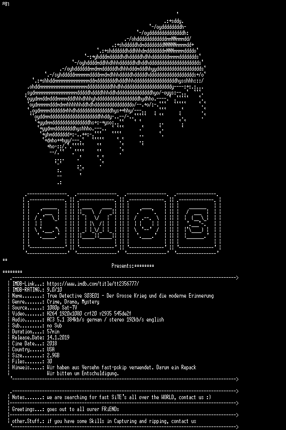 | FiLENAME: | True.Detective.S03E01.Der.Grosse.Krieg.und.die.moderne.Erinnerung.GERMAN.DL.1080p.HDTV.x264.REPACK-CMOS.mkv |