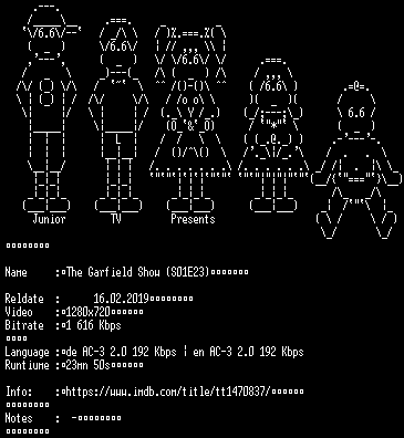 | FiLENAME: | The.Garfield.Show.S01E23.German.DL.720p.WEBHD.x264-JuniorTV.mkv |