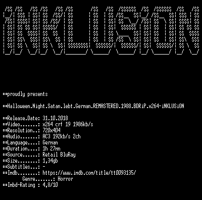 | FiLENAME: | Halloween.Night.Satan.lebt.German.REMASTERED.1988.BDRiP.x264-iNKLUSiON.mkv |