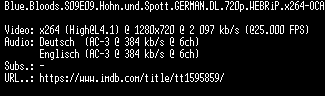 | FiLENAME: | Blue.Bloods.S09E09.Hohn.und.Spott.GERMAN.DL.720p.WEBRiP.x264-OCA.mkv |